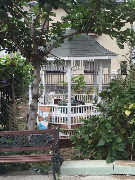 枯葉を大掃除して、すっぴんの風見鶏のテラス